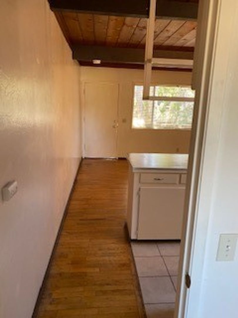 Cozy 1 bedroom 1 bathroom unit. Carpet, gas stove, skylight in kitchen, shower/tub combo, 1 carport parking space with storage locker. Landlord pays water, trash and sewer. Tenant pays PG&E.