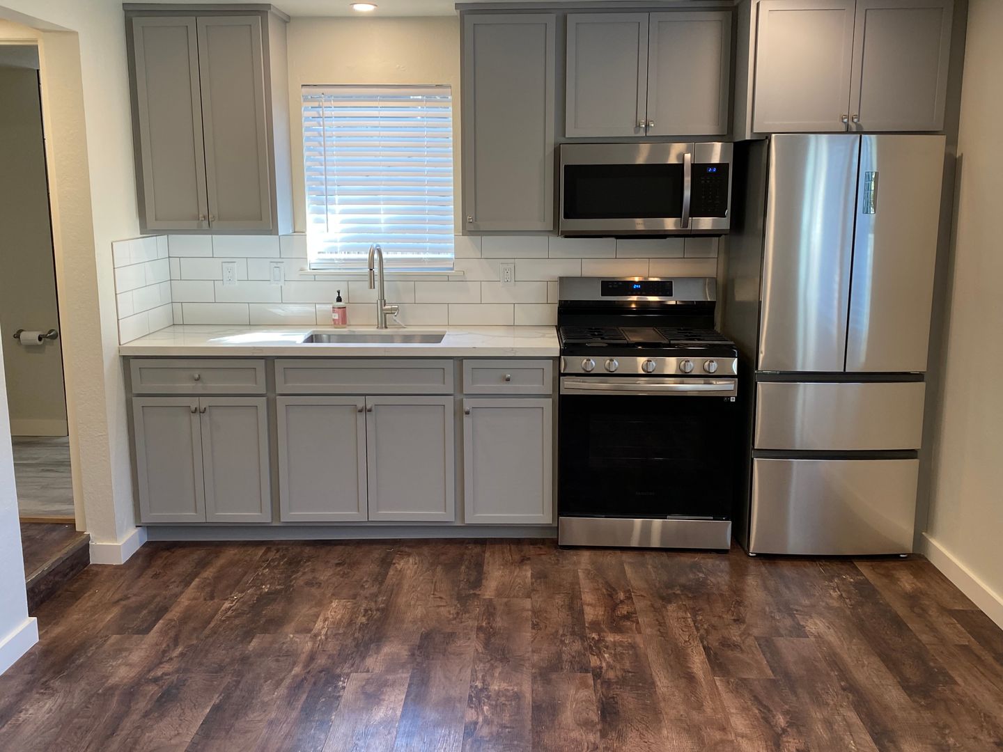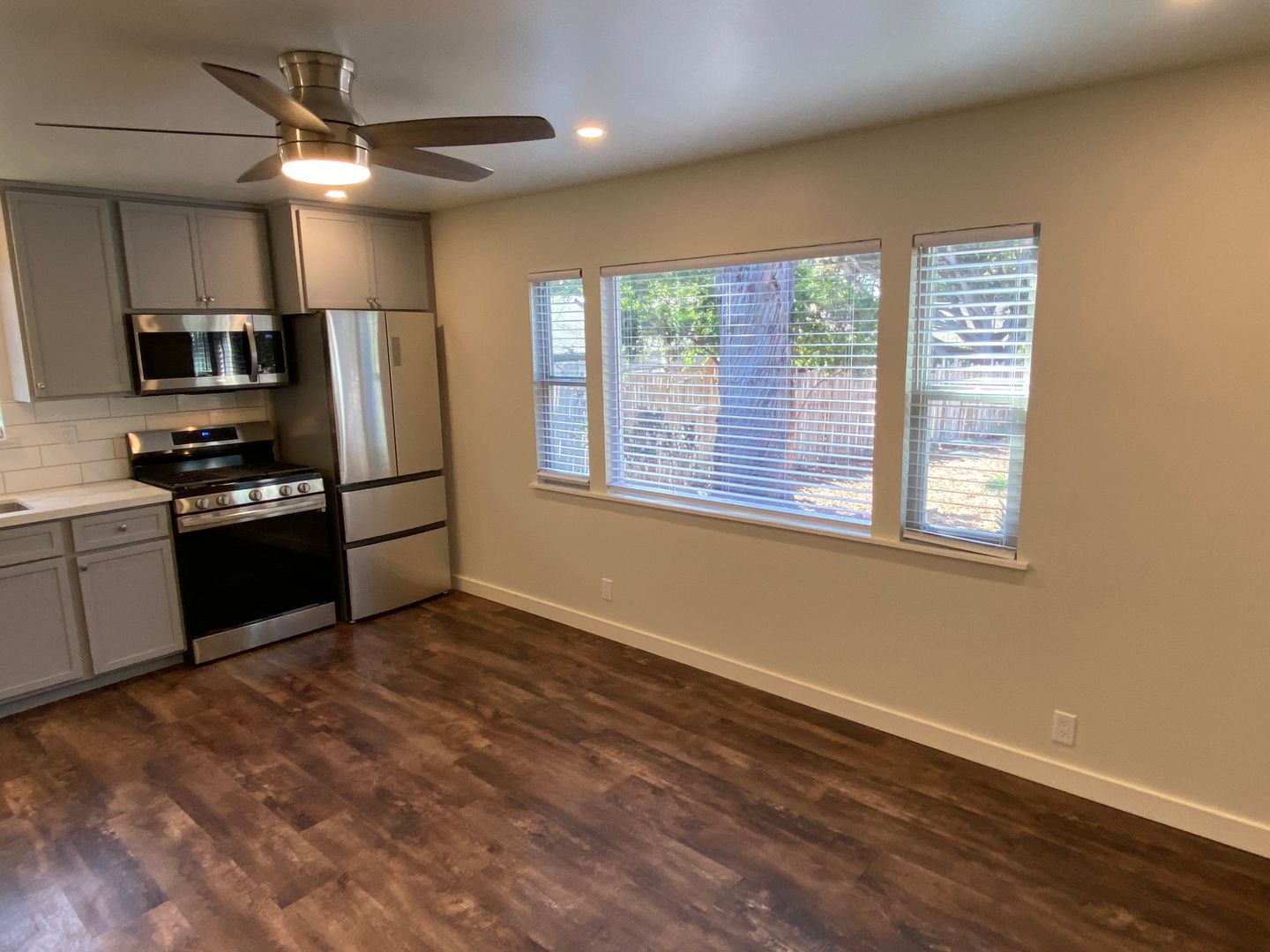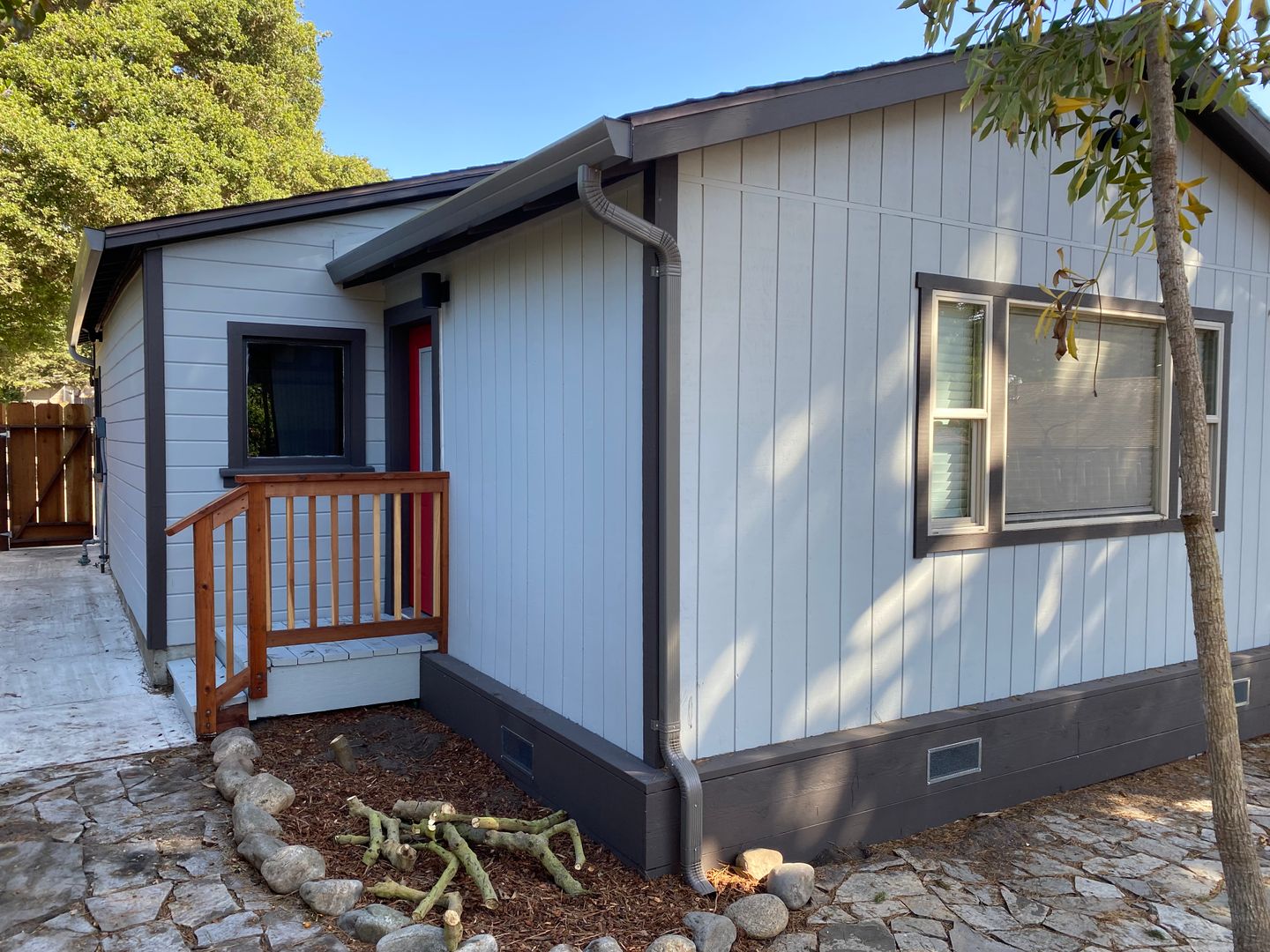 Very clean and recently remodeled studio unit, part of a tri-plex. New kitchen appliances, stackable washer/dryer, flooring, gas fireplace in the living room and large park-like backyard. Fence surrounds this unit which makes it a private location.